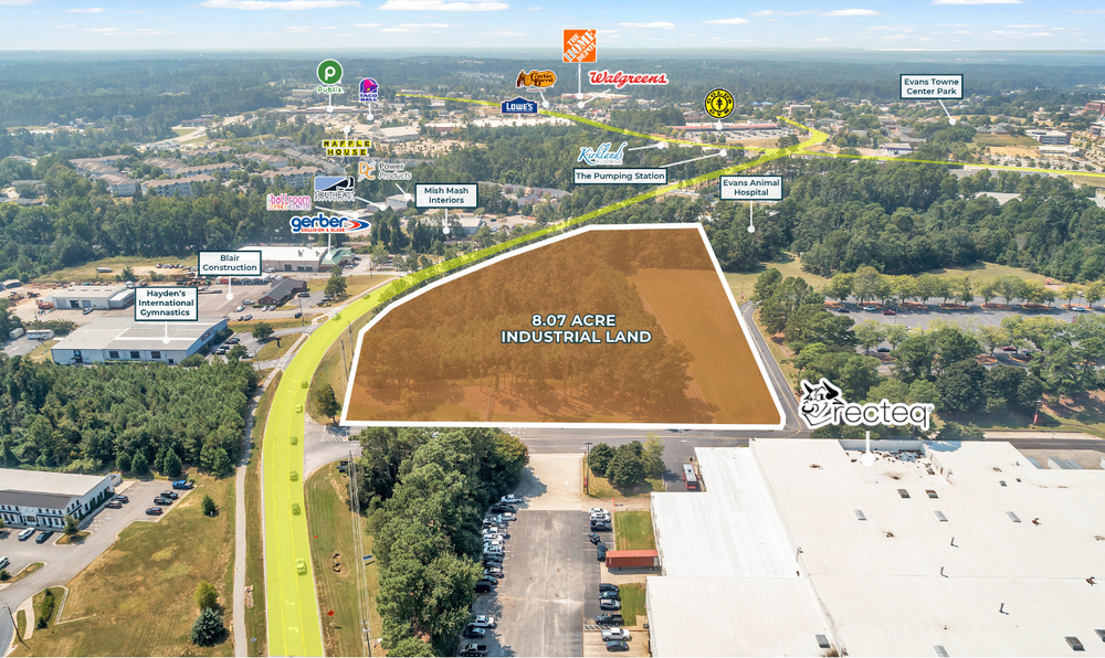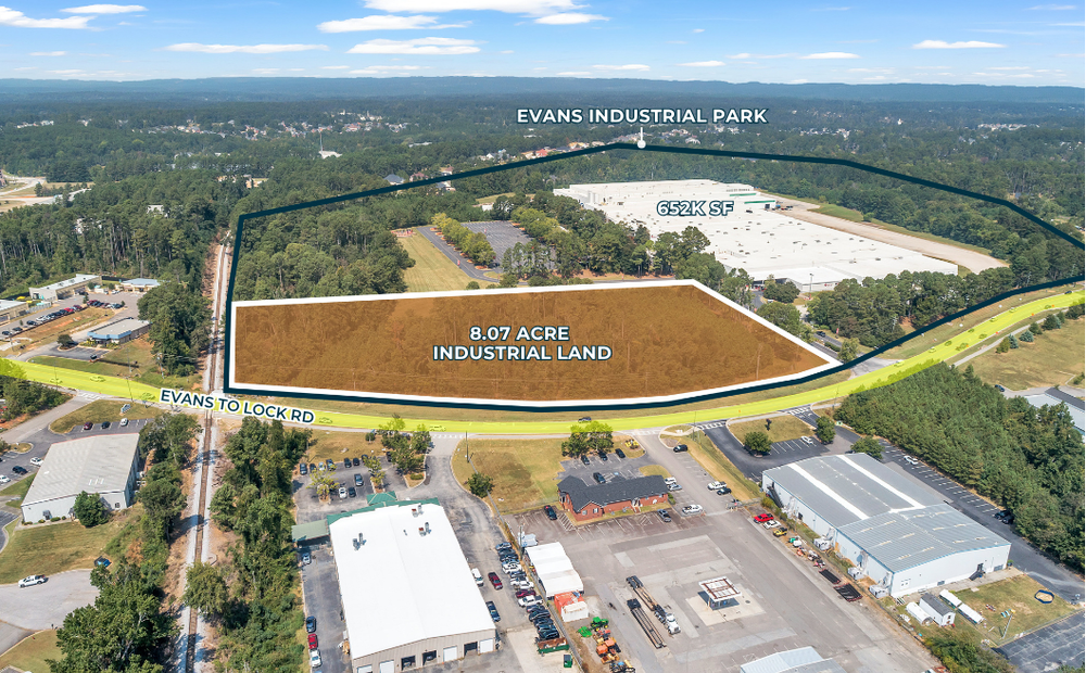 The Finem Group at Meybohm Commercial is pleased to exclusively present 00 Evans to Locks Road in Evans, Georgia — a ±8.06-acre industrial parcel zoned M-2, available for sale or lease as a build-to-suit opportunity. The site could potentially support up to ±80,000 square feet of industrial space and is suitable for manufacturing, distribution, or warehouse users. With utilities in place, flat topography, no wetlands, and no known easements, the parcel offers immediate development potential for owner-users, build-to-suit tenants, or developers targeting a high-demand corridor.