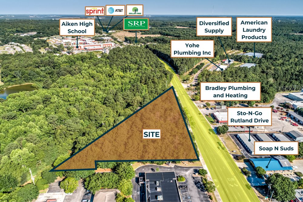 The Finem Group at Meybohm Commercial is proud to present this ±2.60-acre development site located on Rutland Avenue in Aiken, SC. This site is situated within a retail hub of Aiken. This site has 480' of frontage on Rutland Avenue. With a traffic count of 16,500 vehicles per day on Rutland Ave, the site offers a unique opportunity to capitalize on high traffic counts and attract a diverse customer base. The surrounding area is home to numerous national tenants, enhancing the site's appeal for potential retailers.The parcel is currently zoned for commercial use making it ready for development. This highly visible and accessible ±2.60-acre parcel is positioned near the corner of Rutland Drive and York Street in Aiken, SC. The property boasts significant frontage along the busy Rutland Avenue ensuring maximum exposure. With a flat topography, the site is devoid of wetland or floodplain issues, streamlining the development process. The property currently has water and sewer access on Rutland Avenue. The land's characteristics make it an ideal candidate for a wide range of commercial development projects.