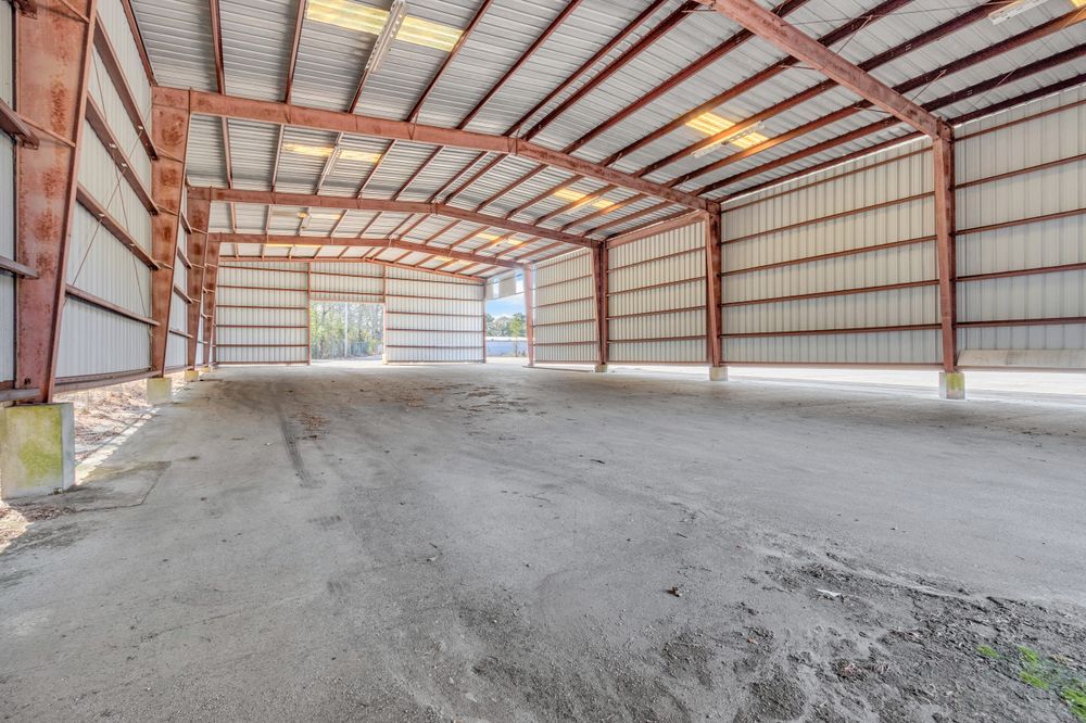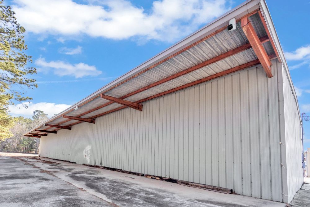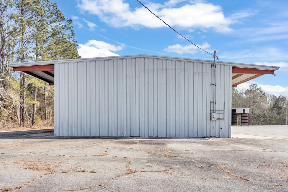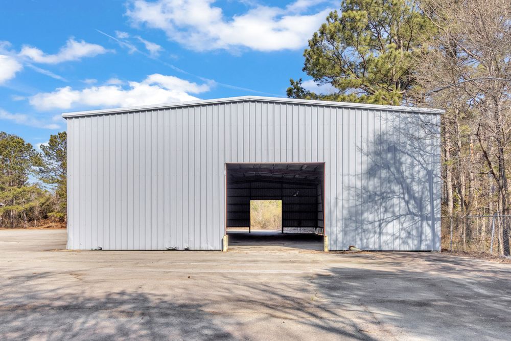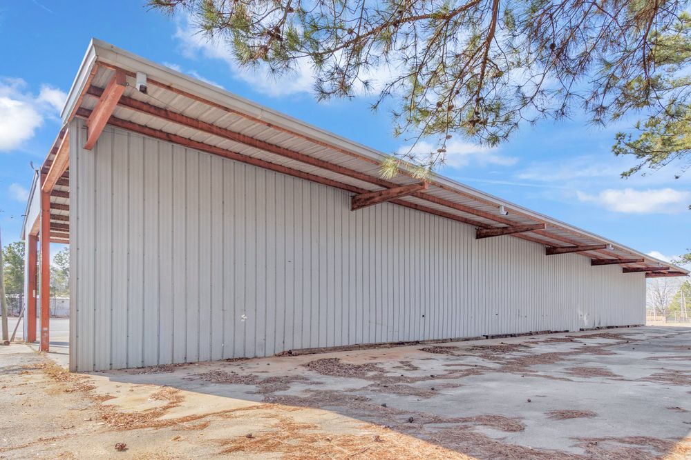 The Finem Group at Meybohm Commercial is pleased to exclusively present 1130 Washington Road in Thomson, Georgia for lease. This ±13,500 square foot covered storage opportunity consists of two separate warehouse structures totaling approximately 6,000 SF (Building 1) and 7,500 SF (Building 2), situated on approximately 3.0 acres of fenced laydown yard. Building 1 (front structure) measures approximately 40 feet wide by 150 feet long and features clear heights of approximately 15.5 feet at the eaves and 17.5 feet at the center. The structure provides covered storage with a partially enclosed configuration suitable for equipment, materials, or fleet staging. Building 2 (rear structure) measures approximately 60 feet wide by 125 feet long and offers approximately 20.75 feet clear height at the eaves and 23 feet at the center. This building features open-span construction with fluorescent lighting throughout, providing an efficient layout for larger equipment storage. Access to a loading dock attached to the adjacent church building is available for tenant use. While the church building itself is not included in the lease offering, tenants will have the ability to utilize the loading dock. The gated yard provides additional secured outdoor storage capacity, making this property well suited for contractors, service-based businesses, and operators requiring a combination of covered storage, yard space, and dock access.