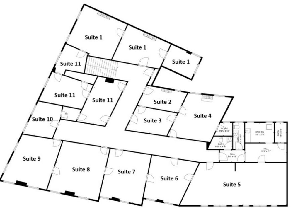 Size: Approximately 8,000 SF (to be confirmed) Location: Second-floor space with stair access only; no elevator Lease Type: Gross lease at $300 to $1,600 per month offices Flexibility: Option to lease the entire floor or individual office suites Interior Features: Exposed brick walls, large windows for natural light, hardwood floors Amenities: Shared restrooms, communal break area, and street parking Availability: Immediate occupancy