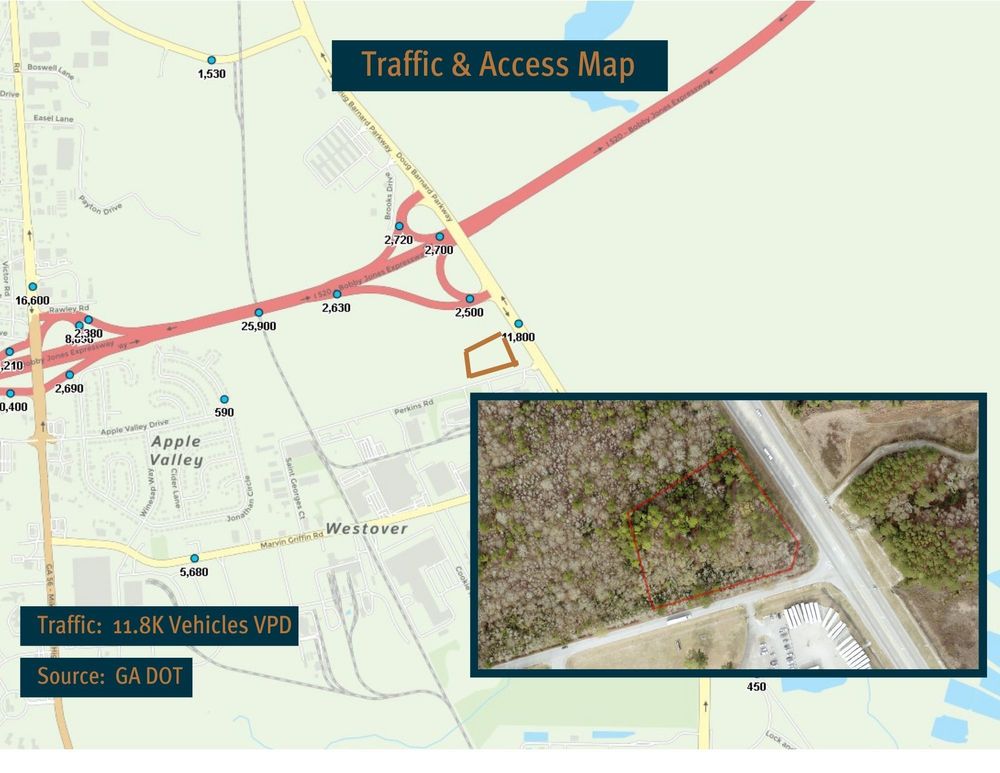 The Finem Group at Meybohm Commercial is pleased to exclusively present this ±2.6-acre development opportunity in Augusta, Georgia. Positioned along a major north-south thoroughfare just south of downtown Augusta, this site benefits from strong visibility and access, making it an attractive location for a variety of users. Located less than 0.5 miles from I-520, which carries approximately 27,900 vehicles per day (VPD), this property offers seamless connectivity to key areas throughout the metro region. The site is also surrounded by employment hubs and economic drivers, ensuring a steady flow of traffic and demand for commercial space. With ample room for 2–3 single-tenant users or a multi-tenant development, 1741 Doug Barnard Parkway presents a prime opportunity for investors and business owners seeking a strategic location in an underserved submarket. Its proximity I-520 and key employment centers enhance its potential to attract a diverse mix of tenants.