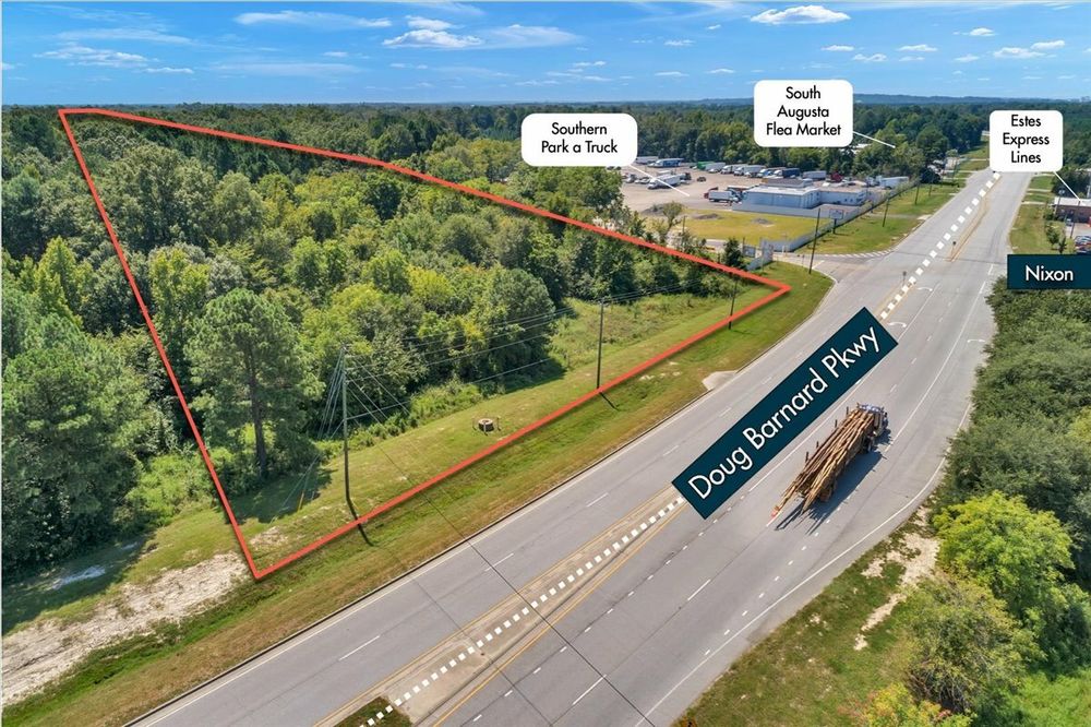 Located near newly proposed Amazon site in Augusta, this development opportunity in south Augusta on high traffic corridor of GA Hwy 56 - Doug Barnard Pkwy. Heavily wooded parcel is aprx 8.69 acre at the intersection of Doug Barnard & Nixon Rd. Magnificent large mature hardwoods and pines throughout. Topography relatively level, may have slight slope to middle and slightly rises to the rear. Frontage on Doug Barnard is aprx 346’. Potential rear access on Gravel Pit Rd with aprx 83’ frontage to parcel. Property is currently zoned Agricultural per Richmond County Planning & Zoning. Property was formerly zoned Industrial but previous zoning classification does not guarantee a future entitlement. The location offers strong development potential. Public water per Richmond Co. No sewer.