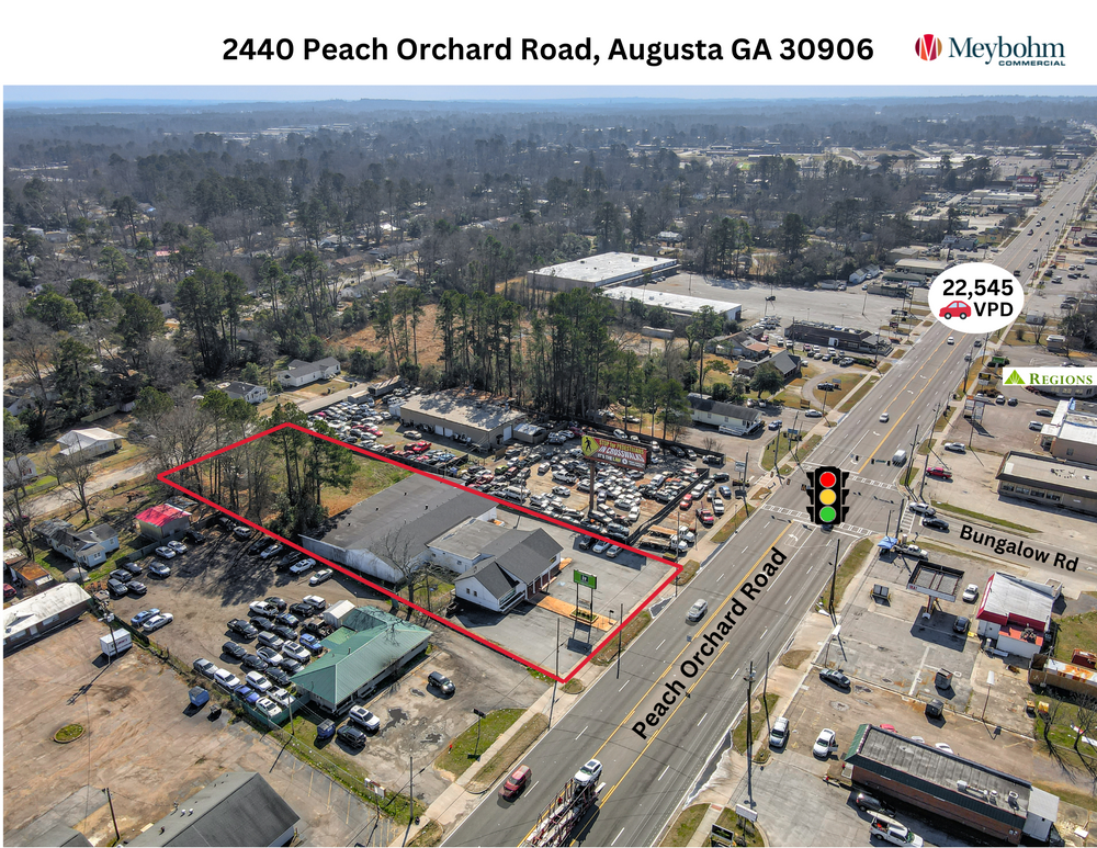 PRICE REDUCED! Meybohm Commercial Properties is proud to exclusively present this 12,393 SF commercial building sitting on a generous 1.23 acres with high visibility located on Peach Orchard Road (+/- 22,545 VPD) in Augusta, GA. Currently the home of well established IT Sportswear who will be relocating. This spacious building boasts +/- 9,300 SF of warehouse space with 2 grade level doors (8'X10', 12'X12') with +/- 3,100 SF of office and showroom space. NEW ROOF in 2025. Presenting a generous floor plan able to accommodate a wide variety of businesses. There are at least 5 offices, 2 bathrooms, a kitchen area, and showroom/retail space. There is a approximately 0.60 acre lot located behind the building providing a rare opportunity for a laydown yard or storage. Don't miss this unique opportunity!