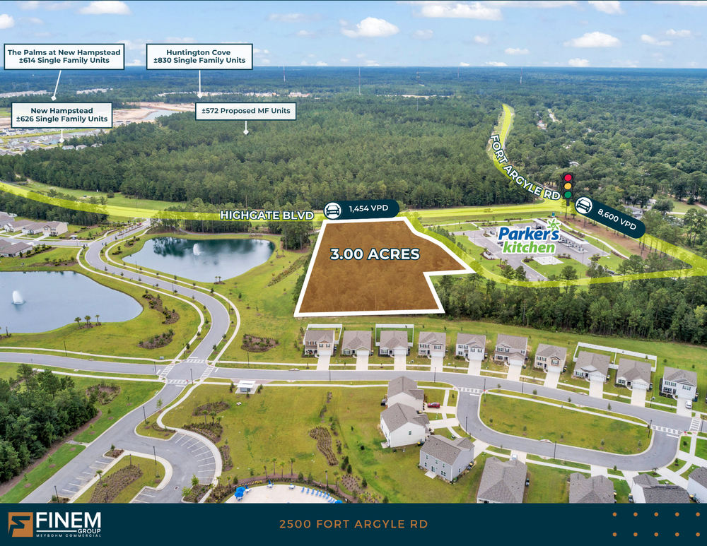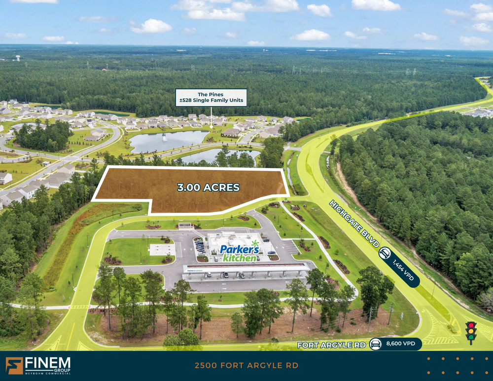 The Finem Group at Meybohm Commercial is pleased to exclusively present the Parker’s Outparcel at 2500 Fort Argyle Road for sale or lease. This ±3.00-acre commercial land opportunity sits directly adjacent to Parker’s Kitchen at a signalized intersection and features dual full-motion access points on both Fort Argyle Road and Highgate Boulevard. Zoned Planned Development (PD), the property supports a wide range of commercial uses including retail, medical, or self storage. Positioned at the entrance to the New Hampstead growth corridor, the site is surrounded by proposed residential communities and a future retail development, offering strategic placement in a rapidly expanding submarket of Chatham County.