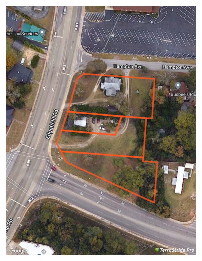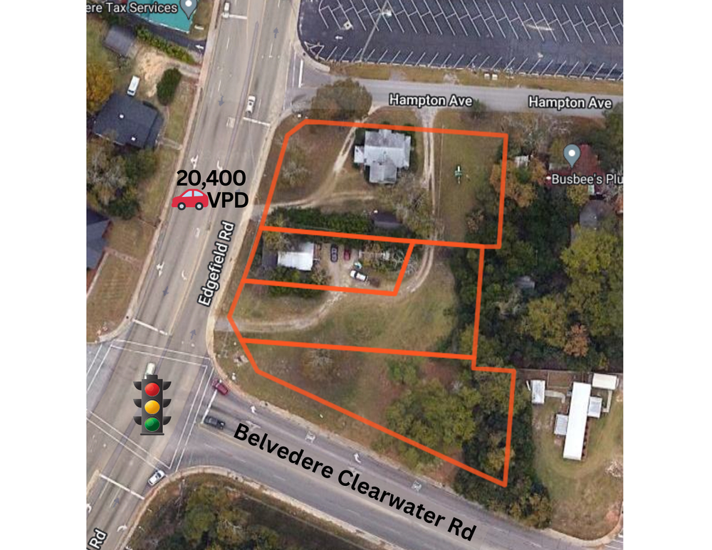 This unique 1.32 acre offering is a composite of four adjoining parcels (Aiken County ID#: 012-06-08-001, 012-06-08-005, 012-06-08-006 & 012-06-08-008). The property is bordered by Edgefield Road/ Highway 25 on the west, Belvedere Clearwater Road/SC Road 126 on the south and Hampton Ave on the north. The signalized intersection of Edgefield Road and Belvedere Clearwater Road boasts approximately 20,400 vehicles per day on Edgefield Rd. All utilities are available on site and it is currently zoned UD (Urban Development). There are two small rental houses that are currently occupied with the rental agreements being month to month. The property will have to be rezoned to accommodate commercial uses. Good site for a Car Wash!