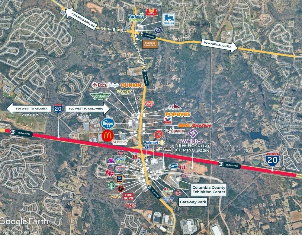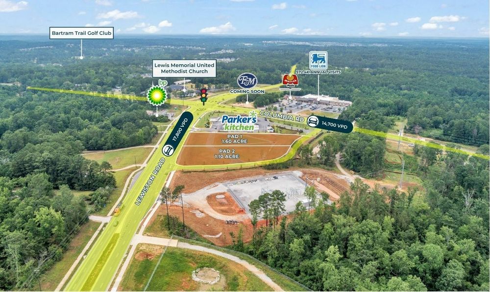 The Finem Group at Meybohm Commercial is pleased to exclusively present two commercial pad-ready sites for ground lease along Lewiston Road in Evans, Georgia. Located adjacent to the newly developed Parker’s Kitchen at the intersection of Columbia Road and Lewiston Road, this ±2.63-acre offering includes two pads with full-motion access via Lewiston Rd and Columbia Rd. Pad 1: ±1.60-acre parcel positioned along Lewiston Road with a dedicated right-in/right-out curb cut. Ideal for a QSRs, Automotive, and Carwashes. Sale Price: $999,000 Pad 2: ±1.10-acre site located behind Parker’s Kitchen with full shared access to Columbia Road. Tailored for smaller format drive-thru concepts including coffee, oil change, or QSRs. Sale Price: $899,000 Total Site: ±2.70-acre parcel comprised of two commercial pads with dual access points along Columbia and Lewiston Roads. Bulk Sale Price: $1,700,000