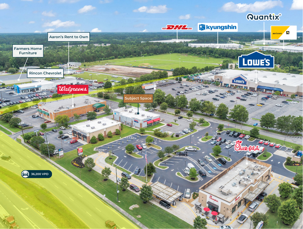 The Finem Group at Meybohm Commercial is pleased to exclusively present 5440 South Columbia Road in Rincon, Georgia, for lease. This modern, 2020-built retail space spans approximately 1,600 square feet and is part of a high-visibility, dual-tenant building with AT&T. The property sits in the heart of Rincon’s dominant retail corridor and offers exceptional access, functionality, and co-tenancy. With dual signalized entry points, the property ensures efficient ingress and egress, and 37 dedicated parking spaces provide ample convenience for customers and staff. Additional shared parking from the adjacent Lowe's further supports heavy foot traffic. Strategically located adjacent to Chick-fil-A, Lowe’s, and Kroger, the space is well-positioned for a variety of retail, service, or medical users looking to tap into one of the fastest-growing suburbs of Savannah. The corridor attracts a strong daily consumer base, drawing from a robust local population and Rincon’s status as a preferred residential hub for Savannah commuters. This location also benefits from excellent visibility with 36,200 vehicles per day and exposure to multiple national brands, making it a compelling opportunity for users seeking a strong, established corridor with high daily traffic counts. The space's modern construction, open configuration, and visibility make it ideal for national retailers, urgent care operators, boutique fitness concepts, and QSR brands. Rincon's economic expansion and rapid residential growth provide a solid foundation for long-term tenancy and customer growth, making this offering an ideal long-term foothold in a prime suburban market.